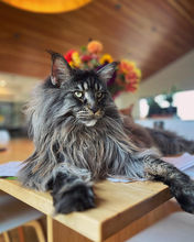 Photo is of Blue when he was a kitten. He is an XL Maine Coon, weighing well over 20lbs, lean.